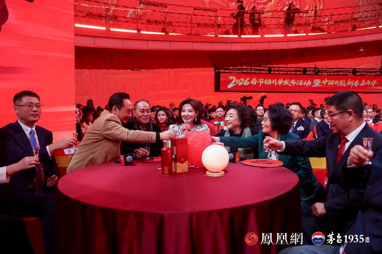 活动的华彩乐章落在举杯时刻。肖桂云导演、宋晓英、张光北、刘劲等电影艺术家,手执窗花、福字、春联等,为春节档和所有观众送上新春祝福。当他们共同举起手中的茅台1935,灯光流转,酒香氤氲——这杯酒,敬的是每一位埋头创作、精益求精的电影匠人,敬的是每一位相信中国电影的观众。